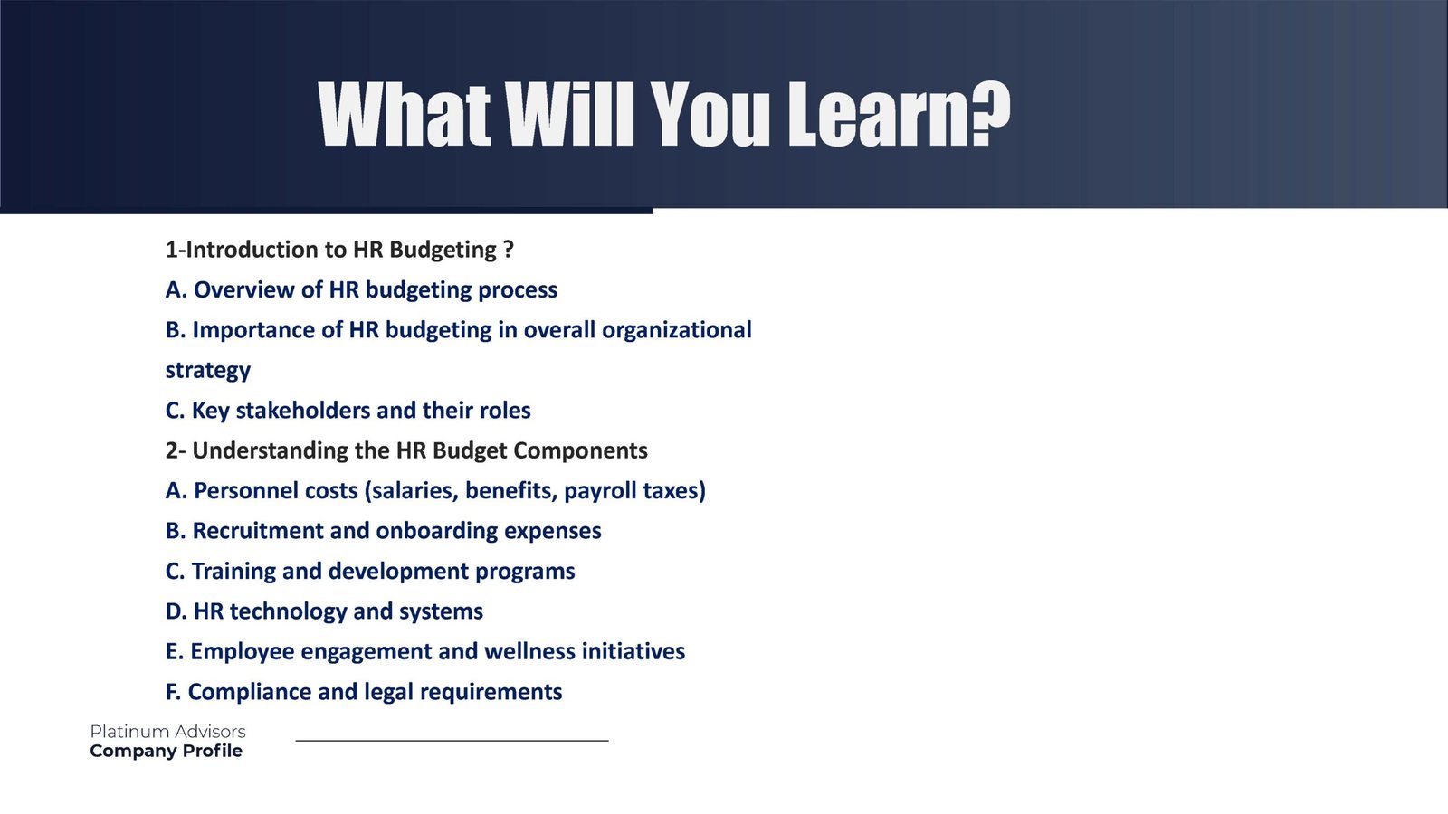 1-Identify the key components and cost factors in HR and build an effective HR budget.